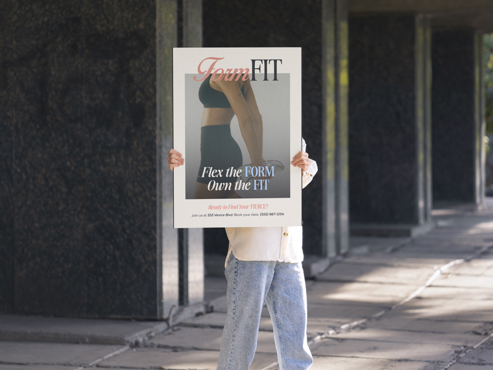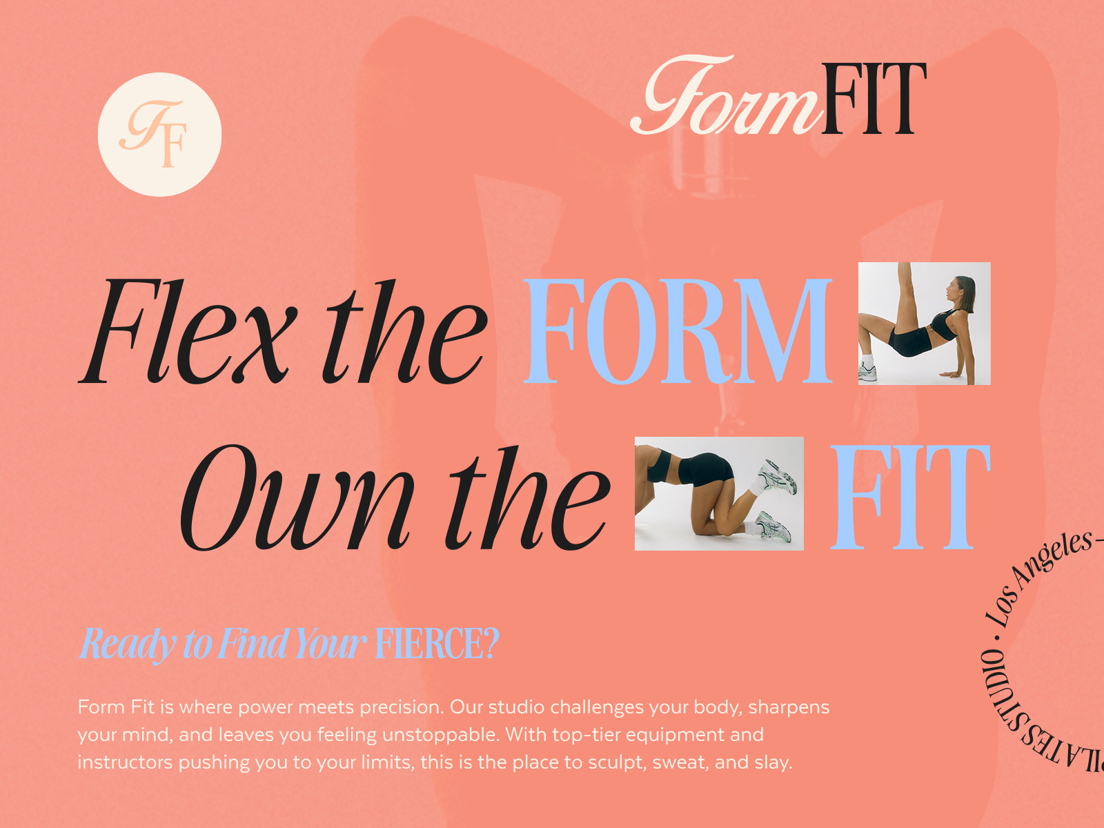 The Form Fit identity is a love letter to retro energy fused with modern sophistication. The logo features a mix of a flowing script font and a bold serif, striking the perfect balance between movement and strength. This combination gives a nod to classic fitness branding while bringing in a contemporary edge.
