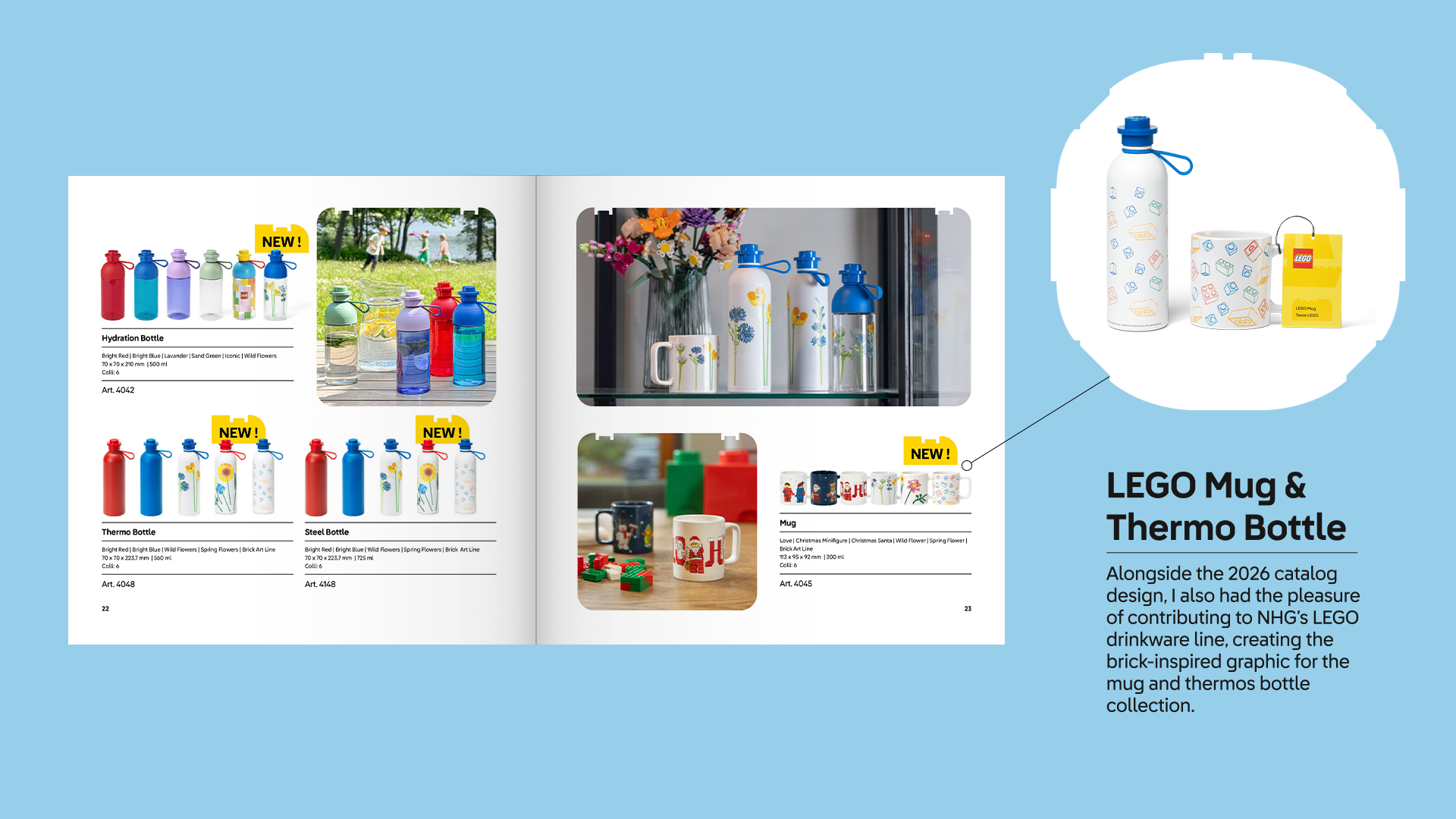 The result is a polished, scalable catalog design that balances LEGO’s playful identity with NHG’s modern, Nordic-inspired product world, a functional tool for both retail presentation and brand storytelling.